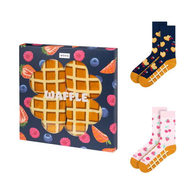 Immerse yourself with us in the colorful world of Soxo sweetness. Unique, colorful women's socks with a motif of crispy waffles are a great solution for any styling. These socks are not only an addition to your closet, but also an expression of your personal style and love of sweets. Get inspired for the new season with socks full of energy and joy. Available in a universal size that will fit most women's feet.