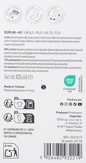 Stylish SOXO socks are made of soft to the touch and stretchy, natural cotton fabric. They are fashionable, comfortable and comfortable to wear. They fit perfectly to most women's feet, and additionally they are a great gift idea!