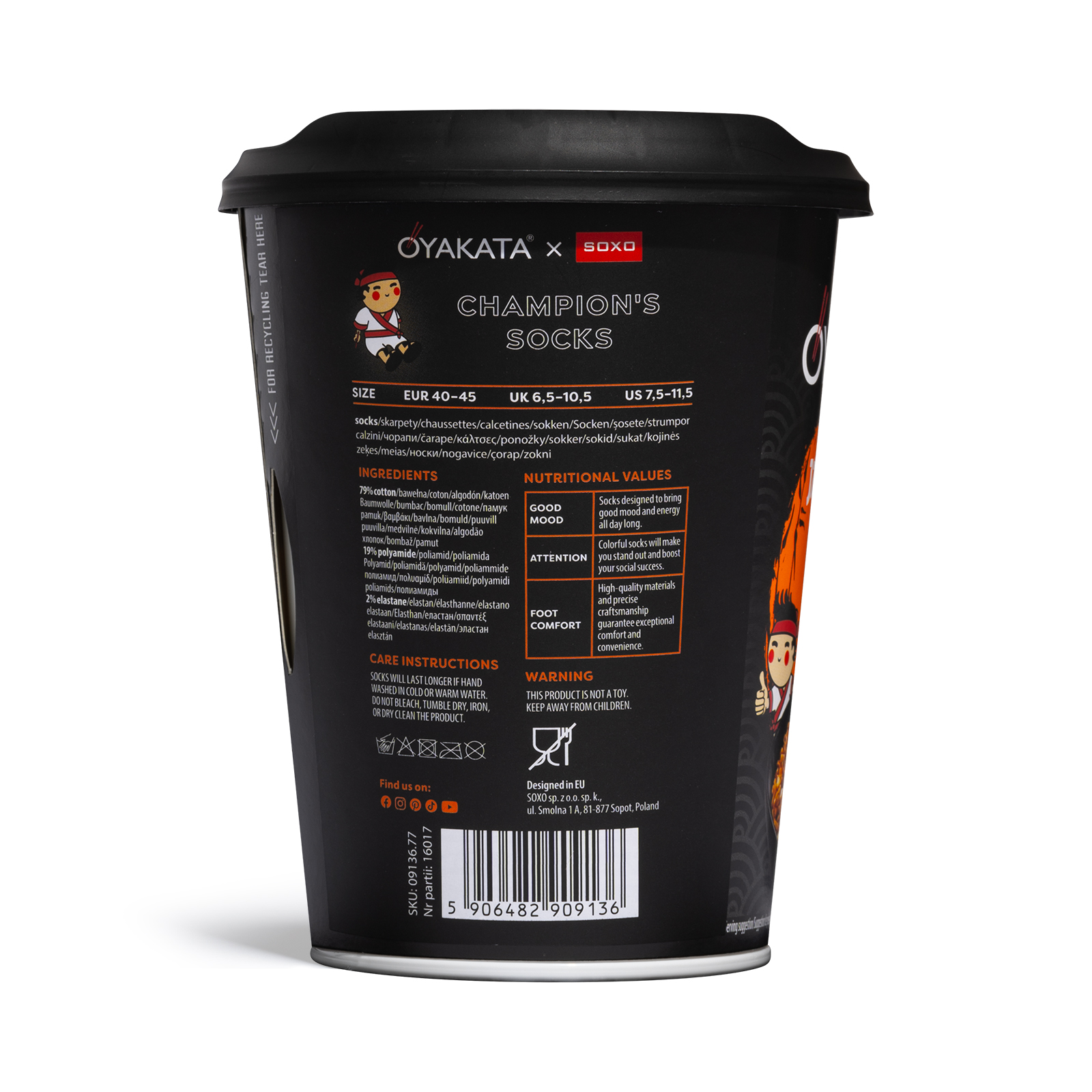 Cheerful OYAKATA Teriyaki socks in a mug are the perfect model for fans of sea travel. Funny socks will work as a gift idea for a man of any age. Complete your closet with interesting designs.