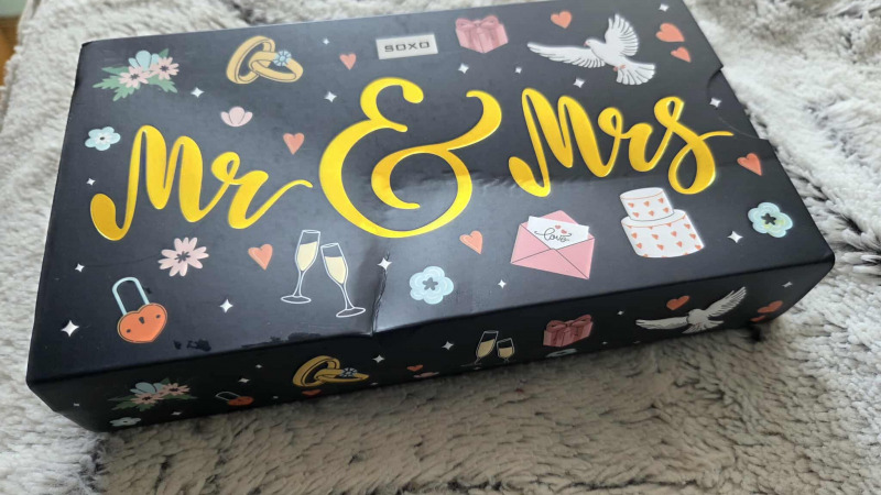 Świetny prezent . Para młoda zadowolona .