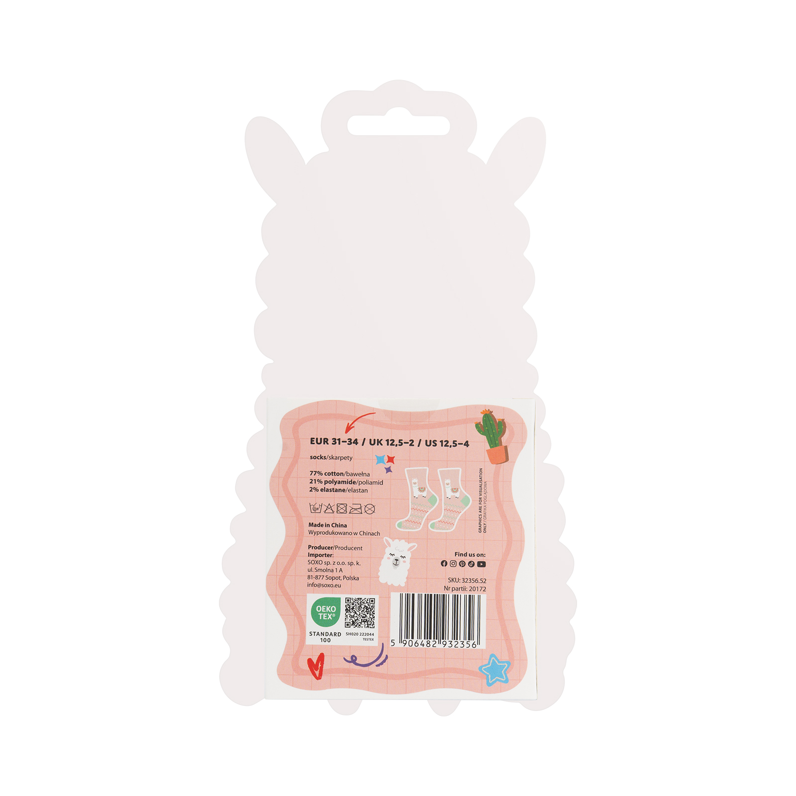 Różowe skarpetki dziecięce z zabawnym motywem lamy to idealny wybór dla małych miłośniczek kolorowych dodatków. Miękki materiał i uroczy wzór sprawiają, że każda stylizacja zyska wyjątkowy charakter.