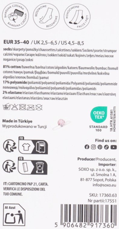 SOXO sp. z o.o. sp. k., ul. Smolna 1a, 81-877 Sopot; e-mail: sklep@soxo.pl