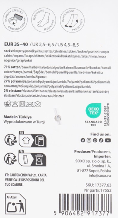 SOXO sp. z o.o. sp. k., ul. Smolna 1a, 81-877 Sopot; e-mail: sklep@soxo.pl