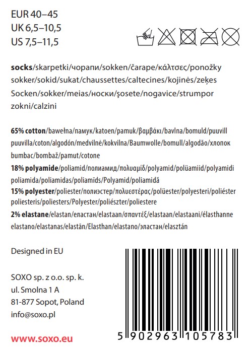 Stylish SOXO socks will delight every man. Made of the highest quality cotton, they will take care of your feet. Surprise your man with unique socks and enjoy a smile all day long. Everyday styling doesn't have to be boring!