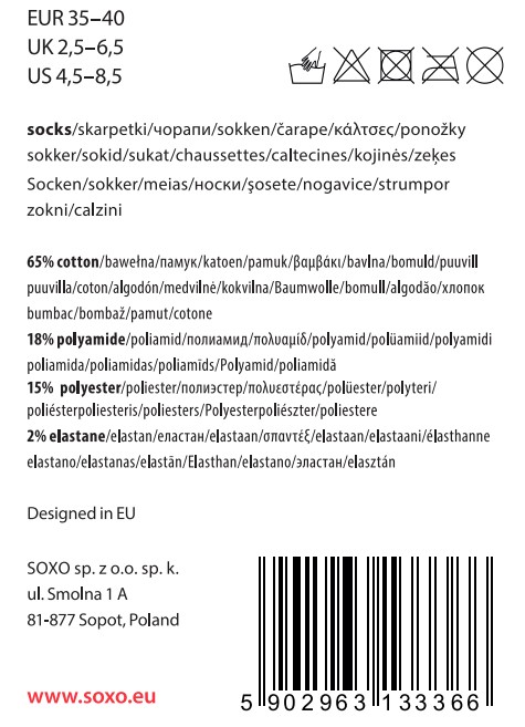 Cotton SOXO socks combine fashion and wearing comfort - a combination that you will love from the first time you wear it! Colorful socks will make you smile all day long! Feel special and make yourself a gift.