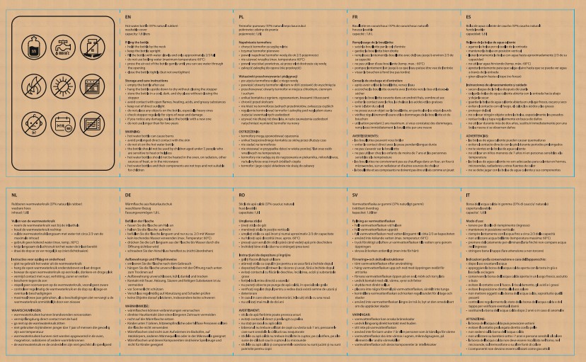 slowly fill the hot water bottle with water to about 2/3 of its capacity, do not use boiling water (max. temp. 60°C)